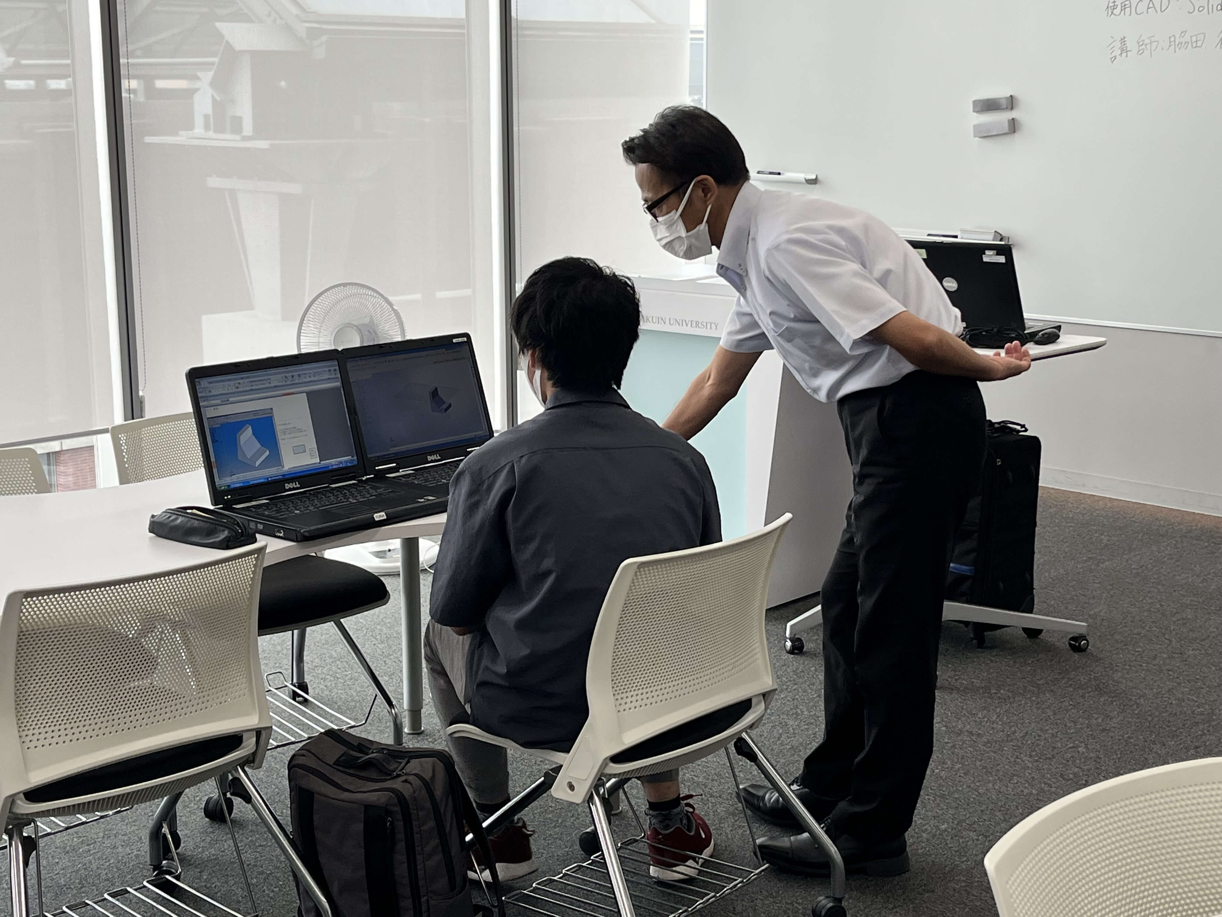 On August 23 (Tue), 24 (Wed), and 25 (Thu), 2022, we held a 3D CAD course at Aichi Gakuin University. This time, 9 people participated, and our employees served as lecturers. We will continue to strive to popularize CAD engineers.